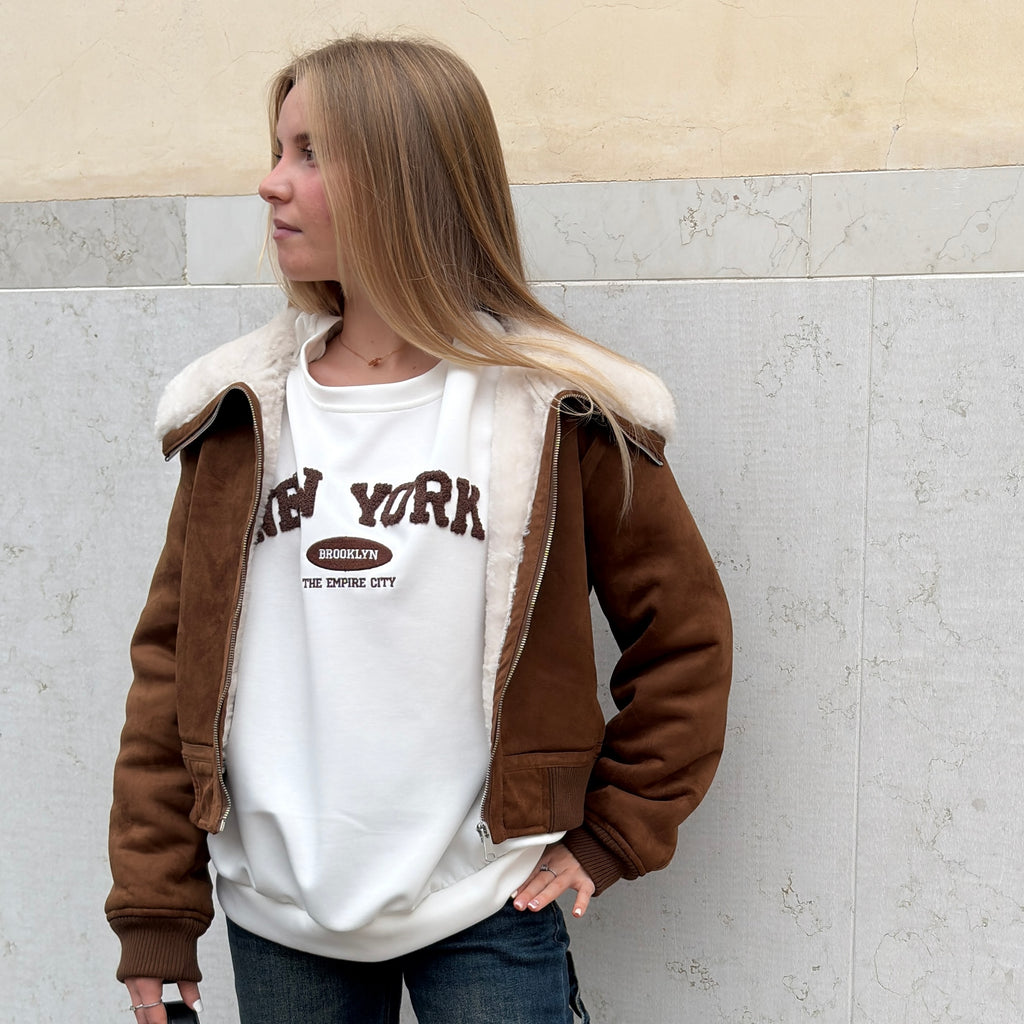 Lo streetwear incontra lo stile: questa felpa girocollo con stampa New York è il capo perfetto per chi ama seguire le tendenze del momento. Comoda, versatile e super cool, è ideale da indossare ogni giorno con jeans, leggings o pantaloni cargo. La grafica frontale rende il look grintoso e attuale, perfetto per chi vuole distinguersi senza rinunciare al comfort.